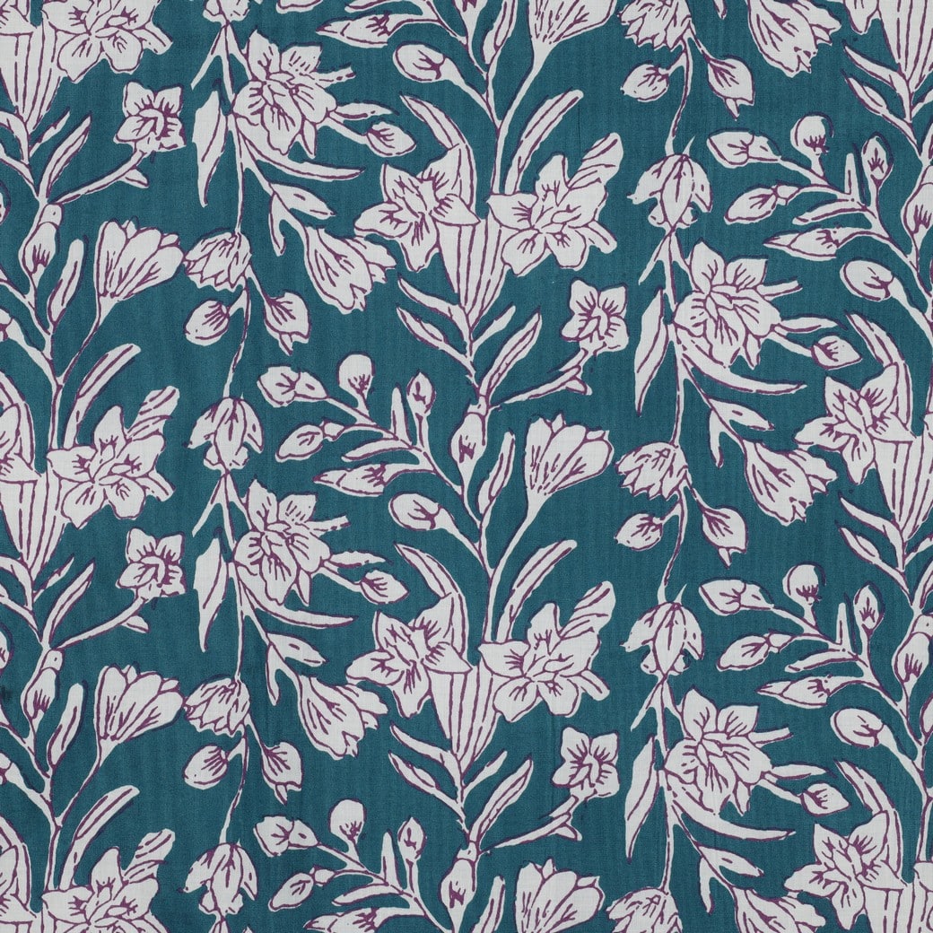 Deze bijzondere stof wordt vervaardigd met de eeuwenoude kunst van het blockprinten, waarbij bekwame ambachtslieden met de hand houten blokken snijden om ingewikkelde patronen op de stof te stempelen. Elke kleur wordt met een apart blok aangebracht in een zorgvuldig, ritmisch proces, wat resulteert in een prachtig gelaagd effect. Omdat elk stuk volledig met de hand wordt gemaakt, is geen enkele meter precies hetzelfde – kleine variaties in kleur, weefsel, stiksel en print zijn een gekoesterd kenmerk van echt vakmanschap en traditie.