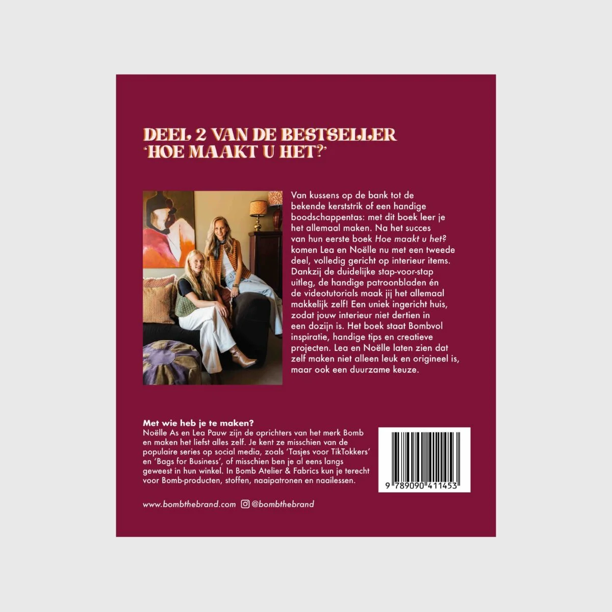Van kussens op de bank tot de bekende kerststrik of een handige boodschappentas: met dit boek leer je het allemaal maken. Na het succes van hun eerste boek Hoe maakt u het? komen Lea en Noëlle nu met een tweede deel, volledig gericht op interieur items. Dankzij de duidelijke stap-voor-stap uitleg, de handige patroonbladen én de videotutorials maak jij het allemaal makkelijk zelf! Een uniek ingericht huis, zodat jouw interieur niet dertien in een dozijn is. Het boek staat Bombvol inspiratie, handige tips en creatieve projecten. Lea en Noëlle laten zien dat zelf maken niet alleen leuk en origineel is, maar ook een duurzame keuze.