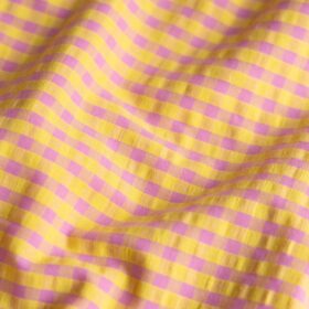 Coupon 35cm seersucker ruit geel/roze
