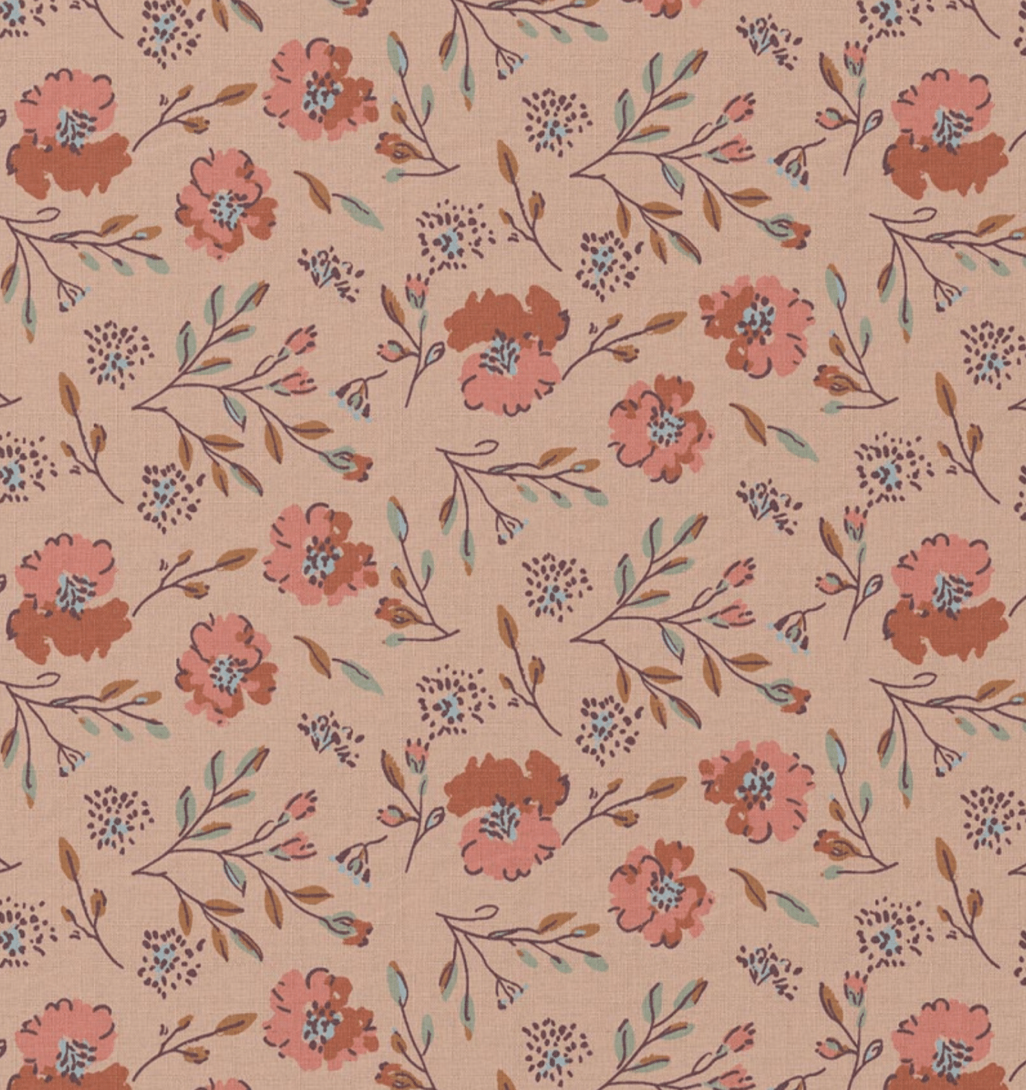 Coupon 60cm katoen bloemen josy roze/camel