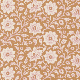 Coupon 70cm katoen bloemen shira camel/roze