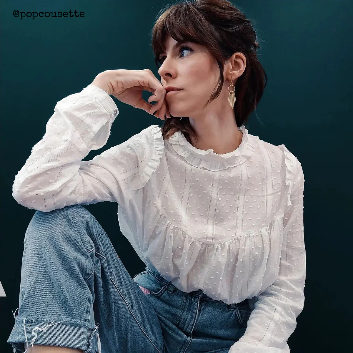 De Louise van Ikatee is een vrouwelijk naaipatroon voor een blouse of jurk met een schouderpas en een verfijnde rucheskraag als eyecatcher. Dit ontwerp heeft een romantische, bohemian uitstraling met een subtiele Victoriaanse touch.