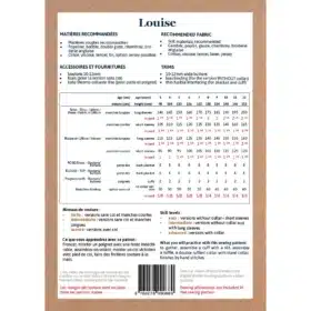 Het patroon bevat twee lengtes: een blouse of een jurk tot net boven de knie. Er zijn verschillende mouwopties: lange mouwen met manchet en split of korte uitlopende mouwen. Het ontwerp heeft een schouderpas met punt aan de voorkant en een opening middenachter. Bij de armsgaten zijn subtiele mini-ruches verwerkt en optioneel kan ook de achterkant worden afgewerkt met een extra ruche. Dit veelzijdige ontwerp is ontwikkeld door Fanny van @petites_choses in samenwerking met Stéphanie van Ikatee en biedt maar liefst 16 verschillende variaties.