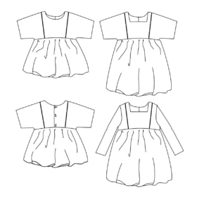 Dit naaipatroon is geschikt voor het maken van een blouse of jurk met een losse, comfortabele pasvorm en veel variatiemogelijkheden. Er zijn twee lengtes: een blouse of een jurk tot net boven de knie. Je kunt kiezen uit een ronde of vierkante halslijn, korte of lange mouwen. Het voor- en achterpand heeft een schouderpas die optioneel kan worden afgewerkt met kant, piping of ladderband. De zijnaden en mouwnaden worden afgewerkt met Franse naden voor een nette en duurzame afwerking.
