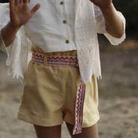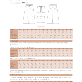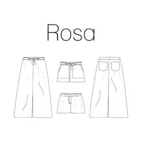 Rosa is een patroon voor kinderen dat zowel kan gebruikt worden voor het maken van lange wijde broeken als een wijd vallende short met hoge taille. Het patroon bevat patroondelen voor maat 86 – 164 (heupomtrek 50 – 86). Het patroon werd ontworpen voor niet- elastische stoffen zoals katoen, viscose, linnen, popeline, (ruwe) zijde, double gauze…