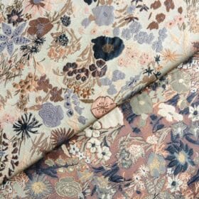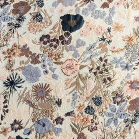 Jacquard is een stof met een ingeweven patroon. Dit betekent dat tijdens het weven de patronen al in de stof worden gecreëerd. Jacquard is perfect voor kimono’s, jasjes en gilets. Zoals je kan zien heeft de stof twee verschillende kanten. Let wel op dat de stof zeer dun is. Wil je meer volume? Watteer je project met fiberfill en een effen voering. Ook heel tof voor een tasje, daar kan je de ritsen van Zipper Zoo goed voor gebruiken.