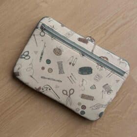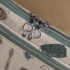 Een etui voor je naai-accessoires. Uiteraard kun je er ook andere dingen in opbergen. Aan de buitenkant twee grote vakken met rits om bijvoorbeeld een grote schaar op te bergen. In de XL versie kun je zelfs een A4 snijmat in dit vak opbergen. Aan de binnenkant heb je twee sets insteekvakken die je naar eigen inzicht verdeelt. Het mesh opbergvak rekt een beetje mee met wat erin zit en in het vinyl opbergvak berg je bijvoorbeeld omkeernaalden of een omkeersetje op. Het vak is helemaal dicht en er valt niets uit! Het etui wordt goed afgesloten door een rits rondom.