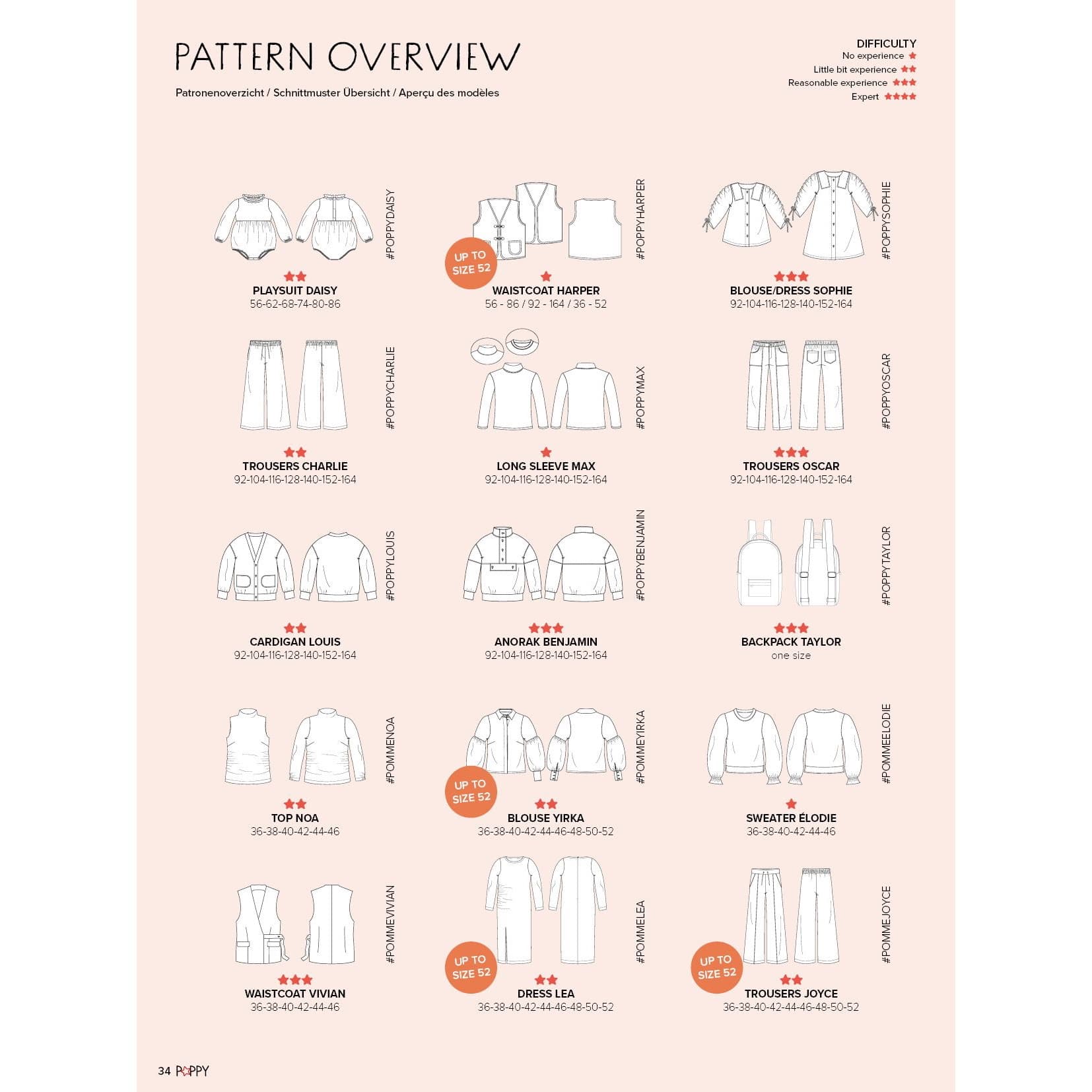 Alle patronen zijn ontworpen voor verschillende niveaus, dus of je nu een beginner bent of een ervaren naaister, er is genoeg te ontdekken en te maken.